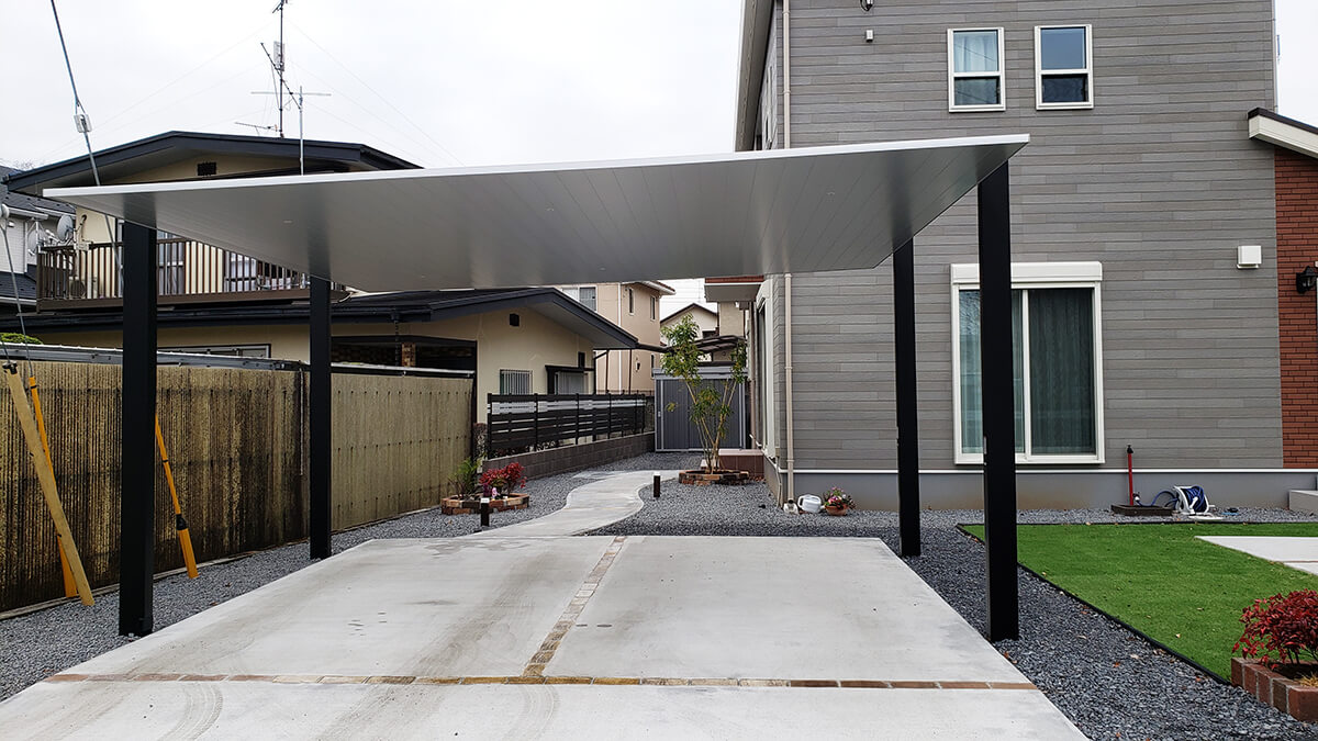 装飾品を無くし、すっきりとしてシンプルなデザインにこだわっているカーポート。