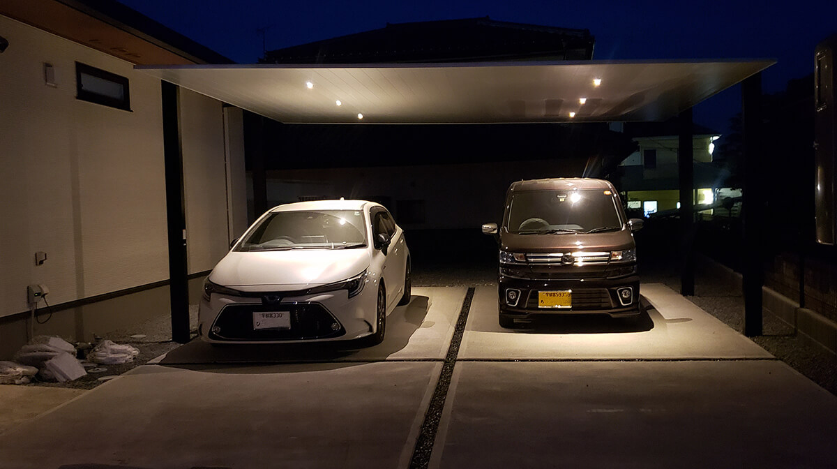 屋根の中にライトも埋め込めるので夜間の明るさも確保可能。