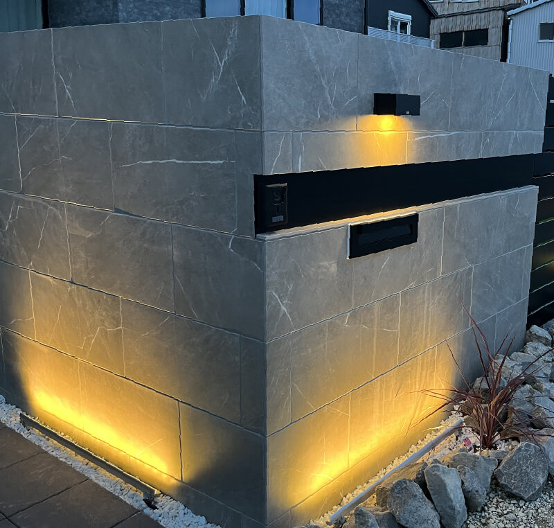 夜に仕事帰りの家族を温かく迎えるライトアップ。
